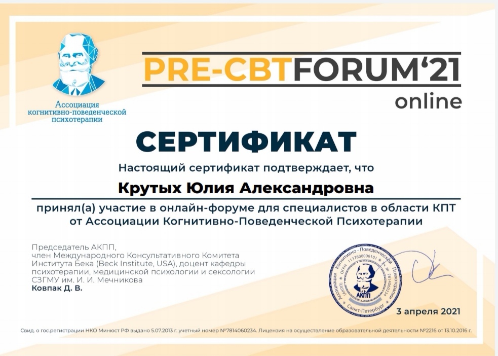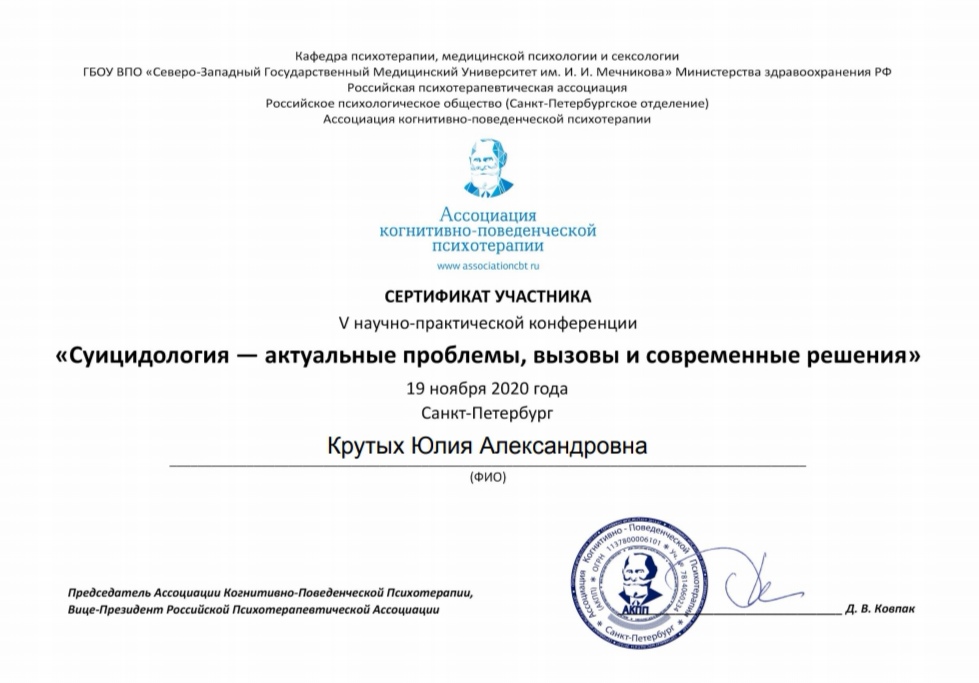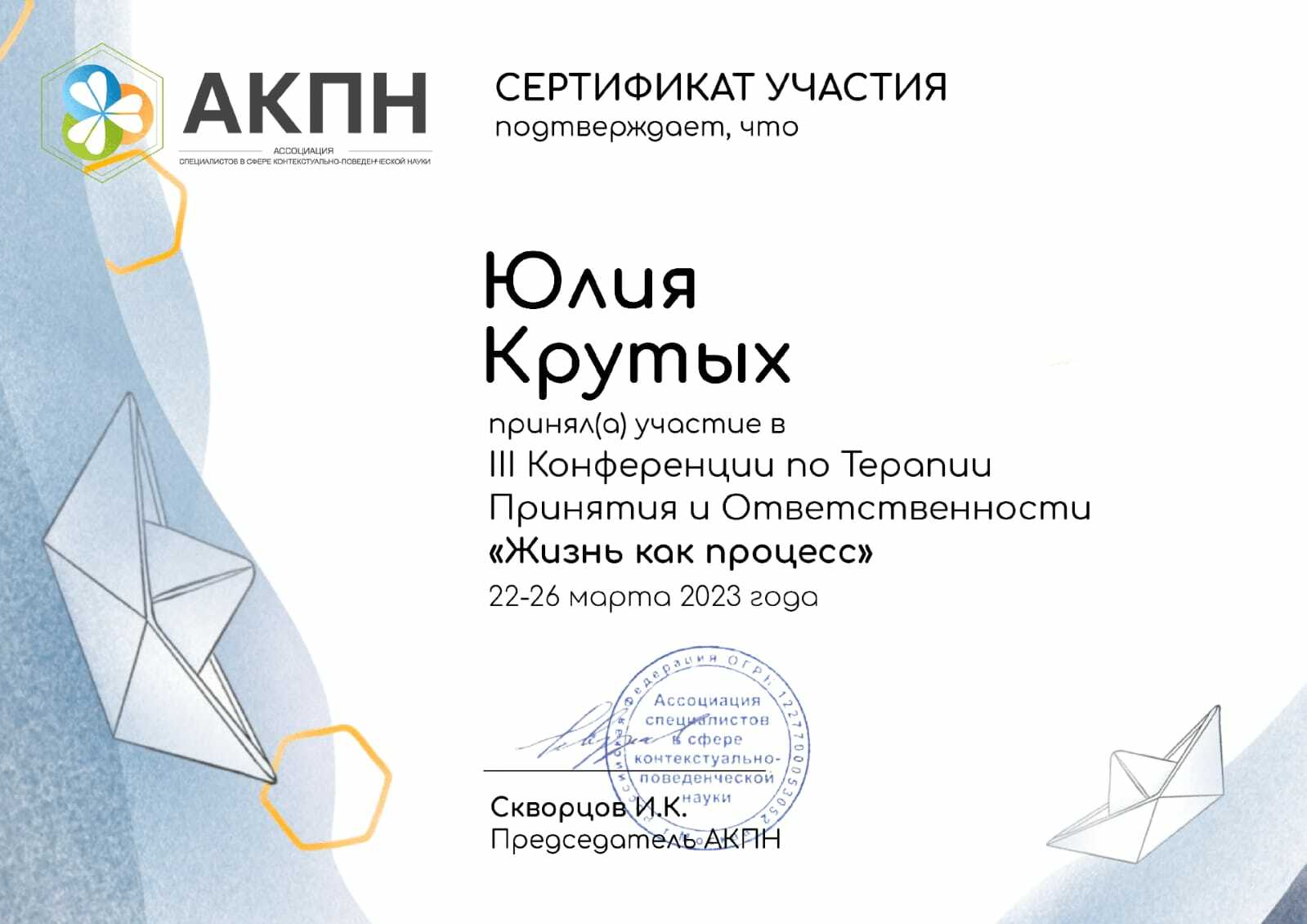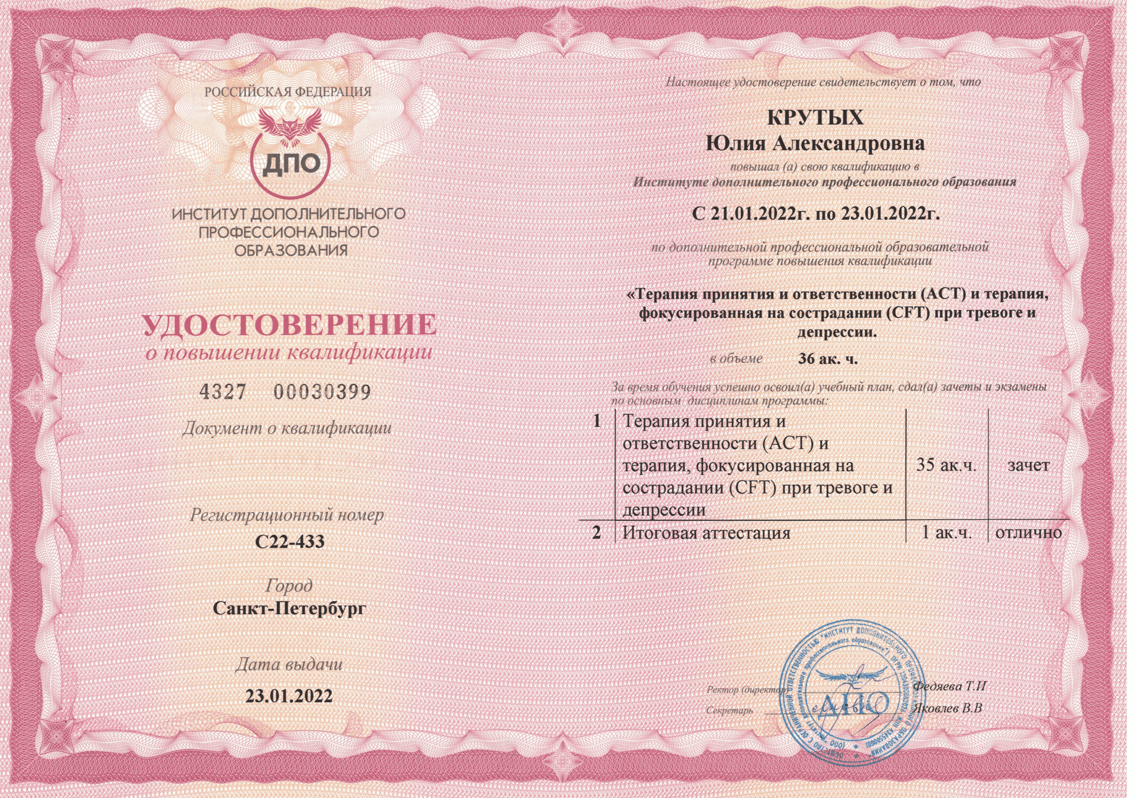 Терапия принятия и ответственности (АСТ). Терапия, сфокусированная на сострадании (СFT) с элементами EMDR терапии при психической травме, 36 ч.