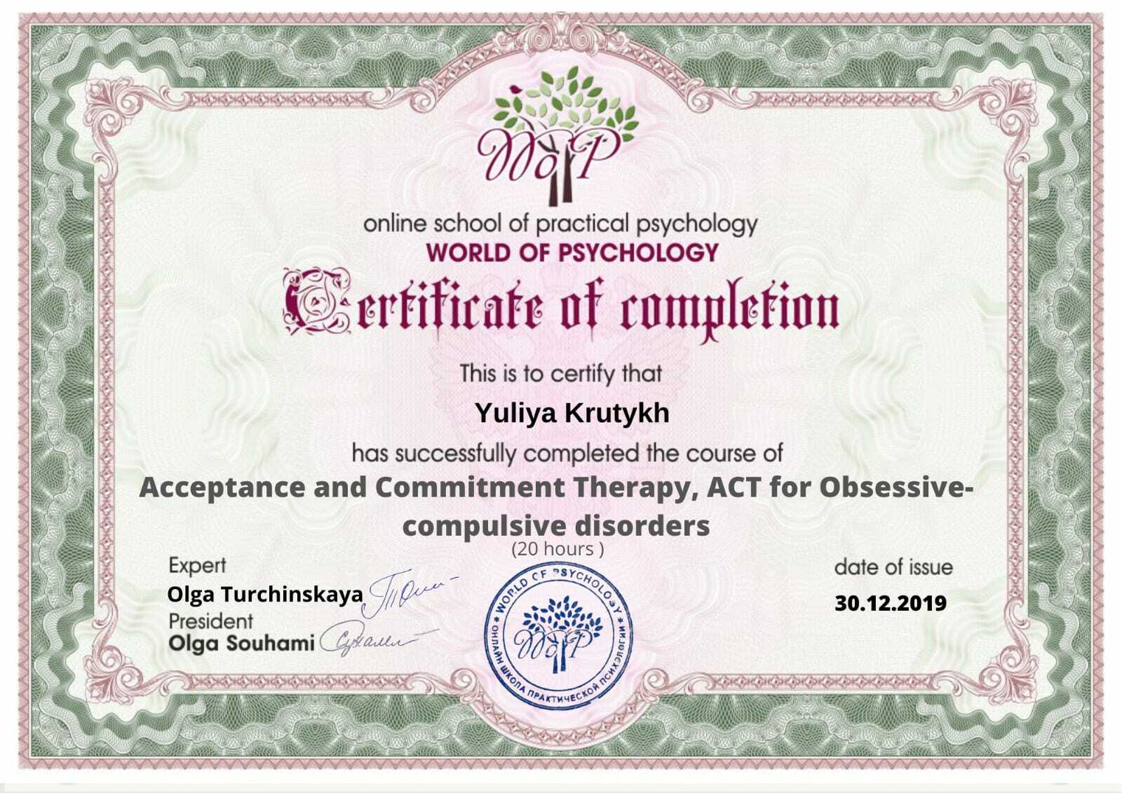 Терапия принятия и ответственности (АСТ) для обсессивно-компульсивных расстройств, 20 ч.