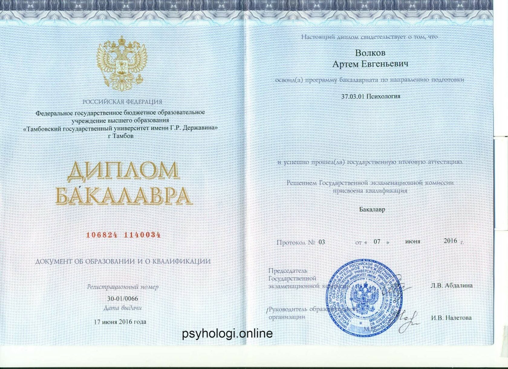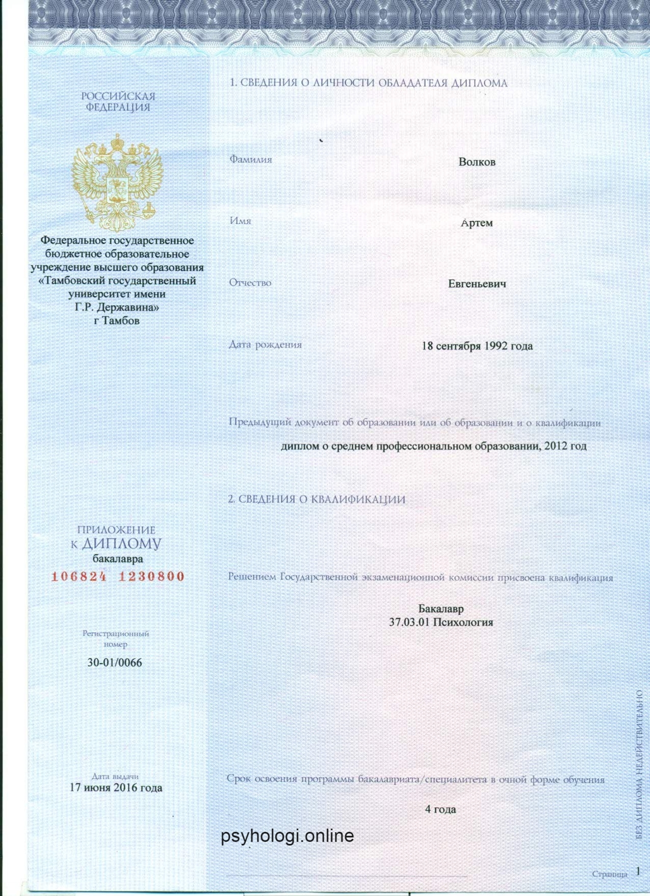 Специальность: Психолог. Квалификация: Бакалавр